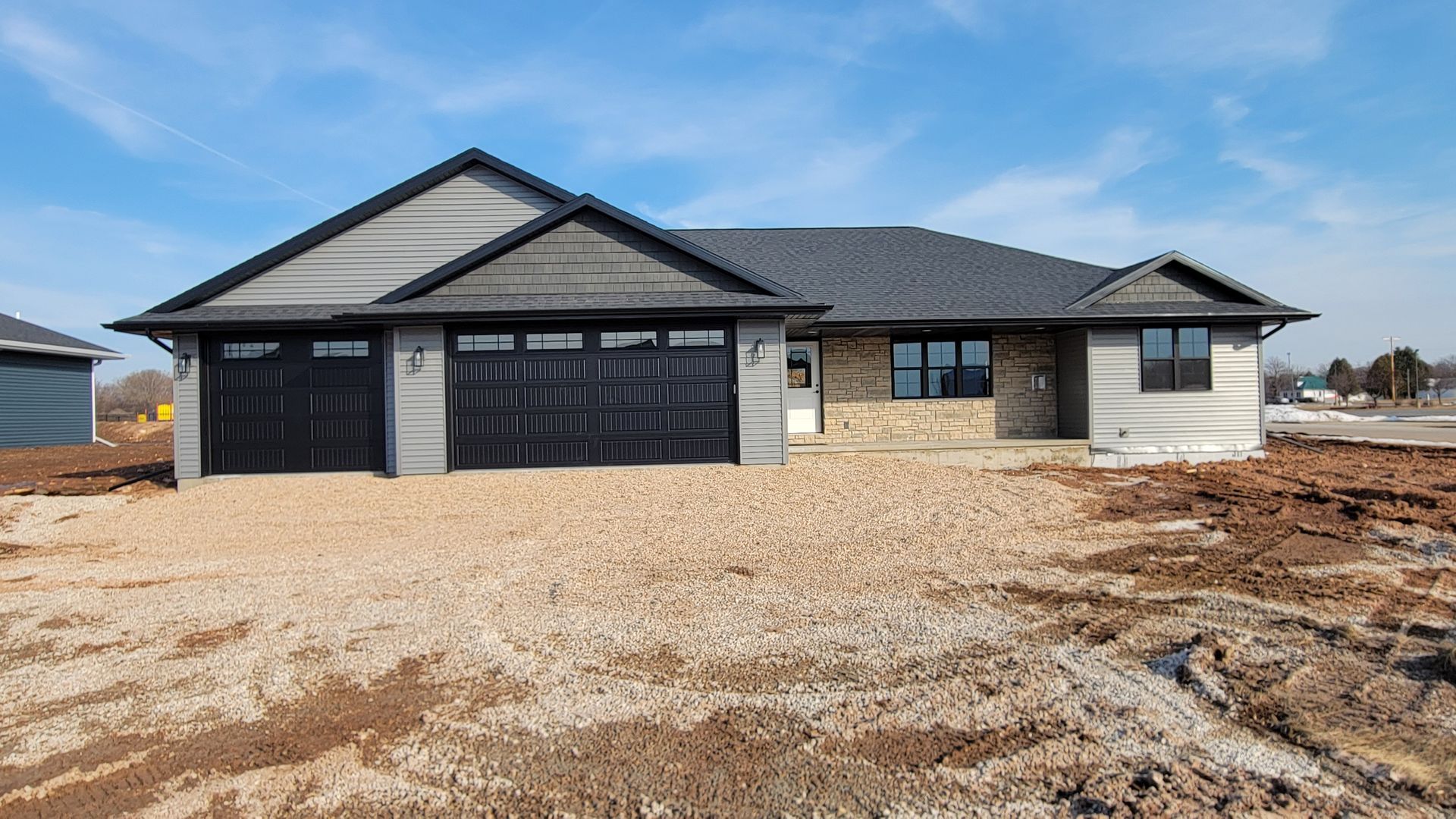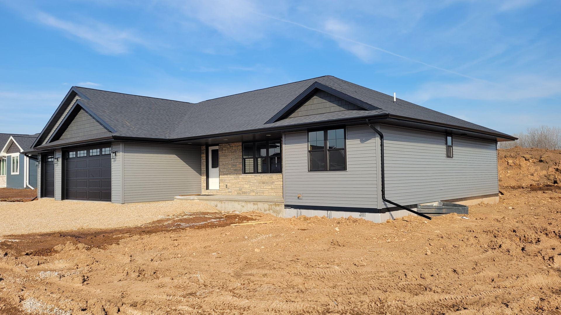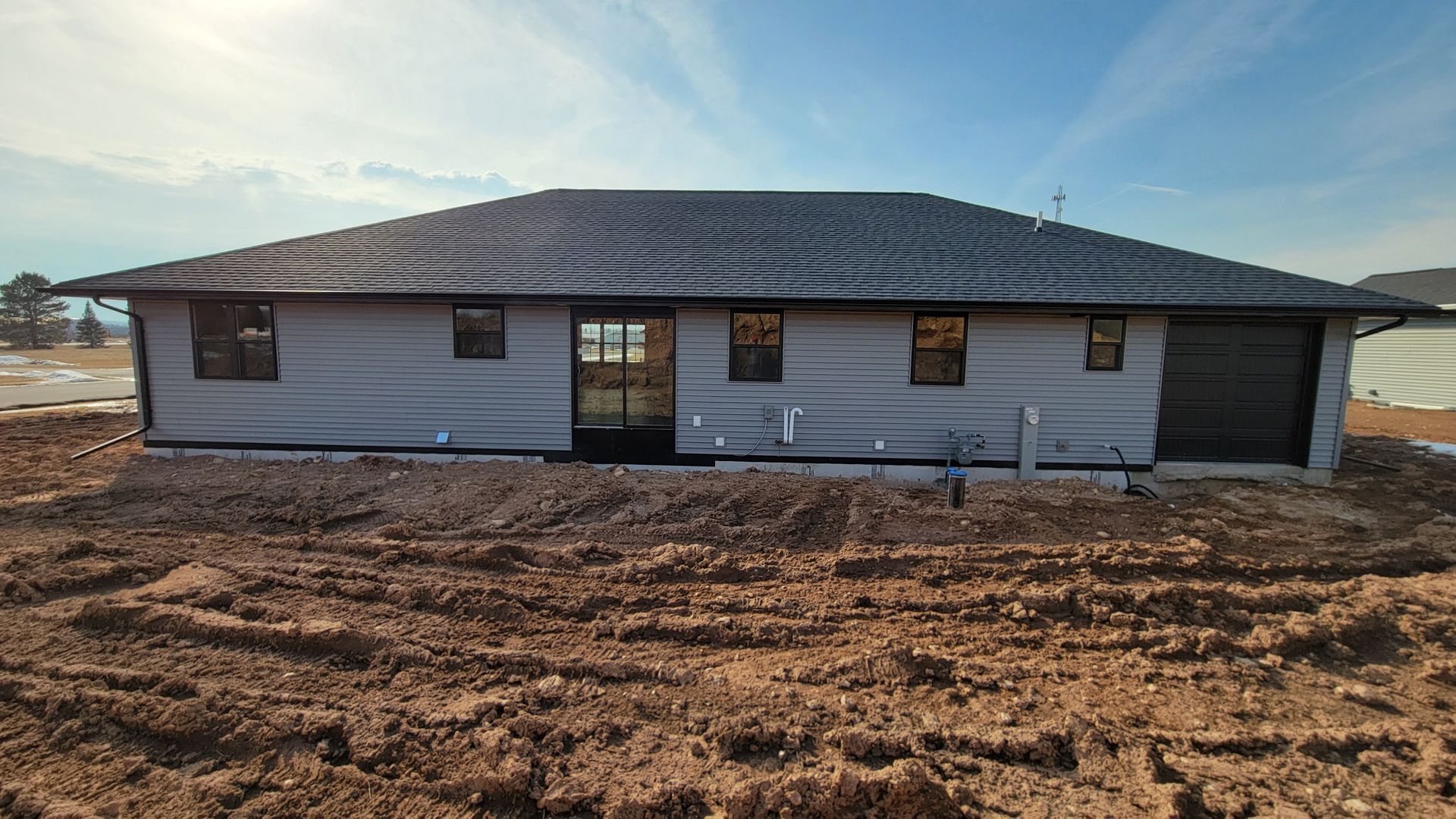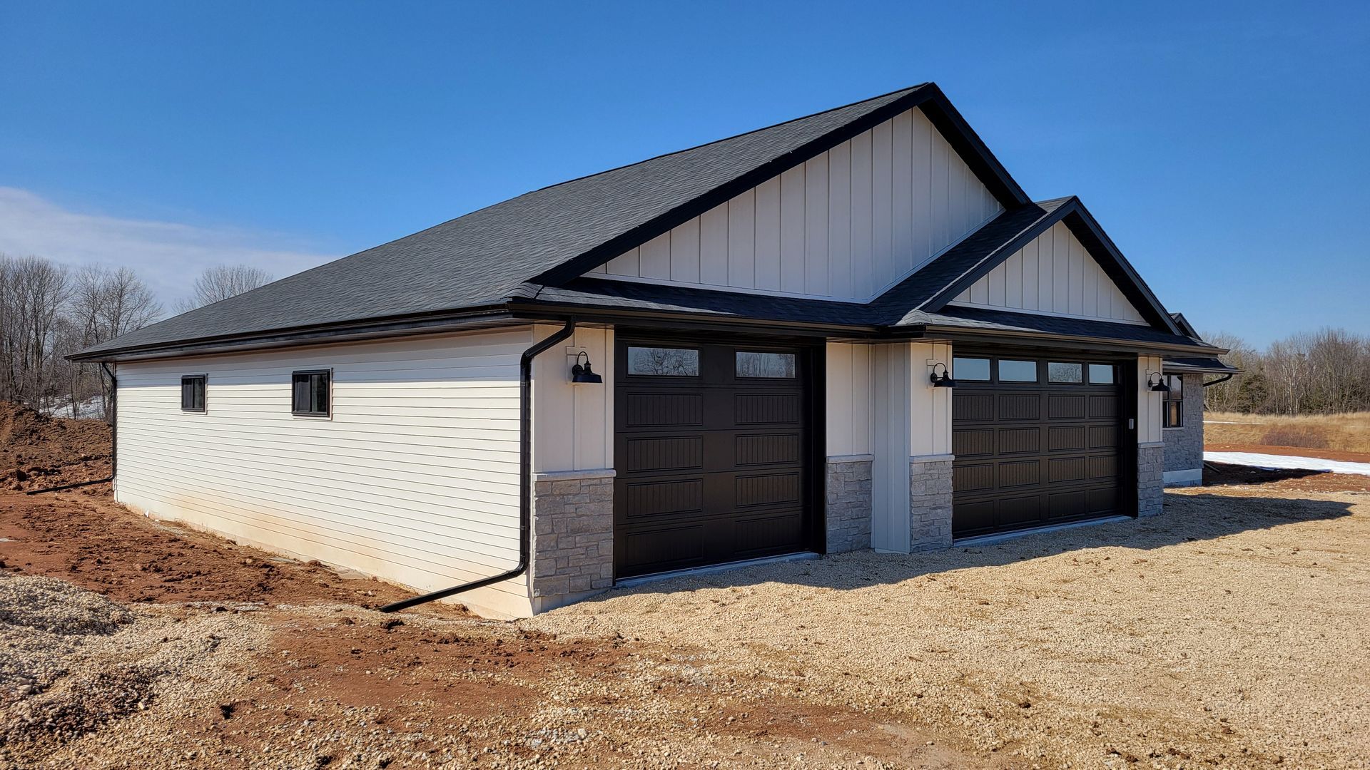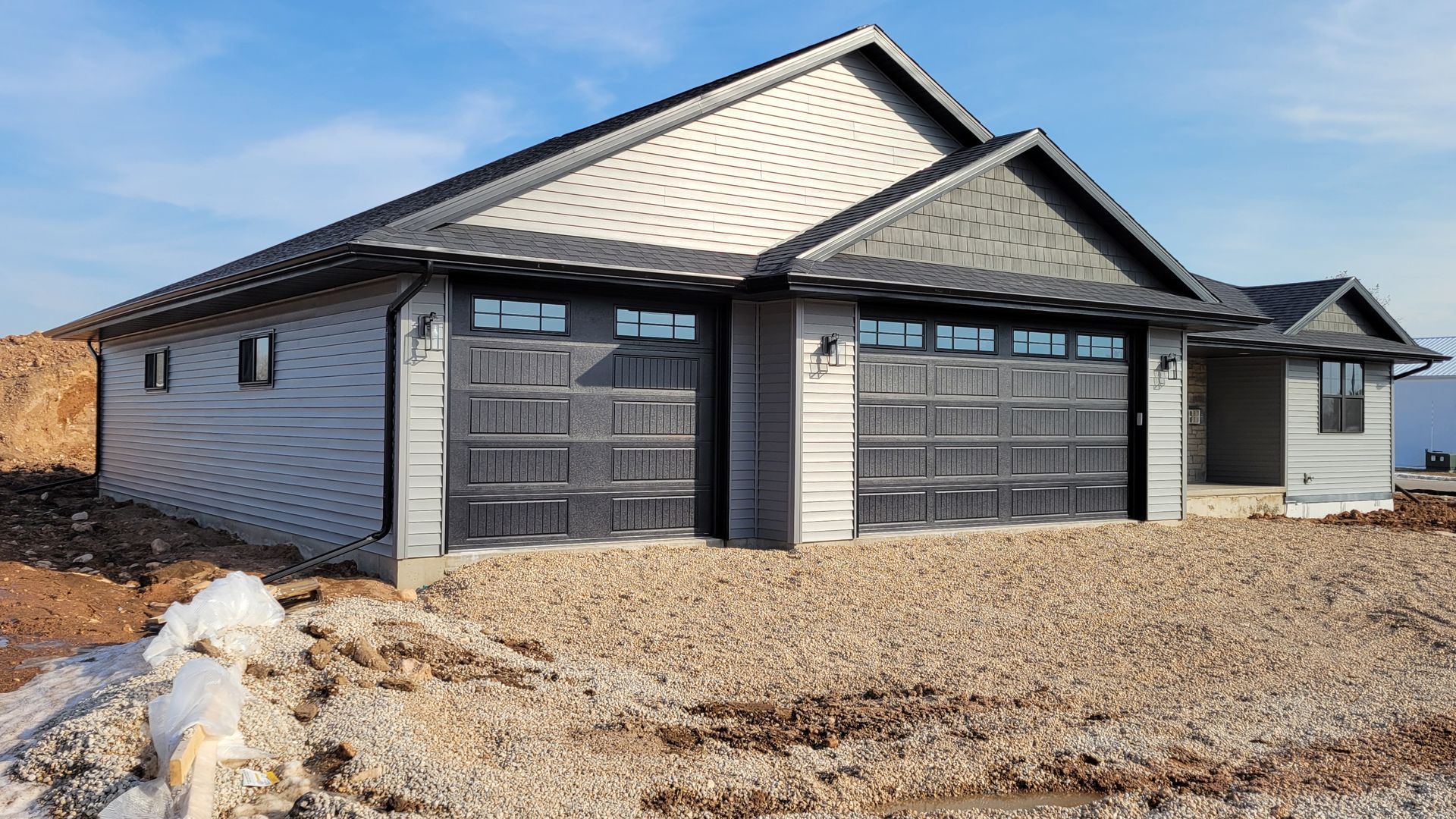 Two new construction homes with Black 5 inch gutters and 2x3 downspouts