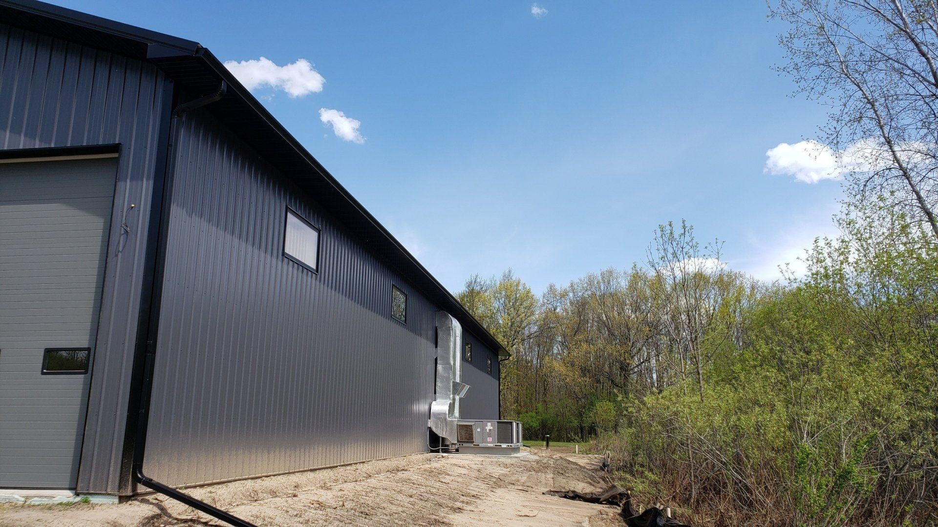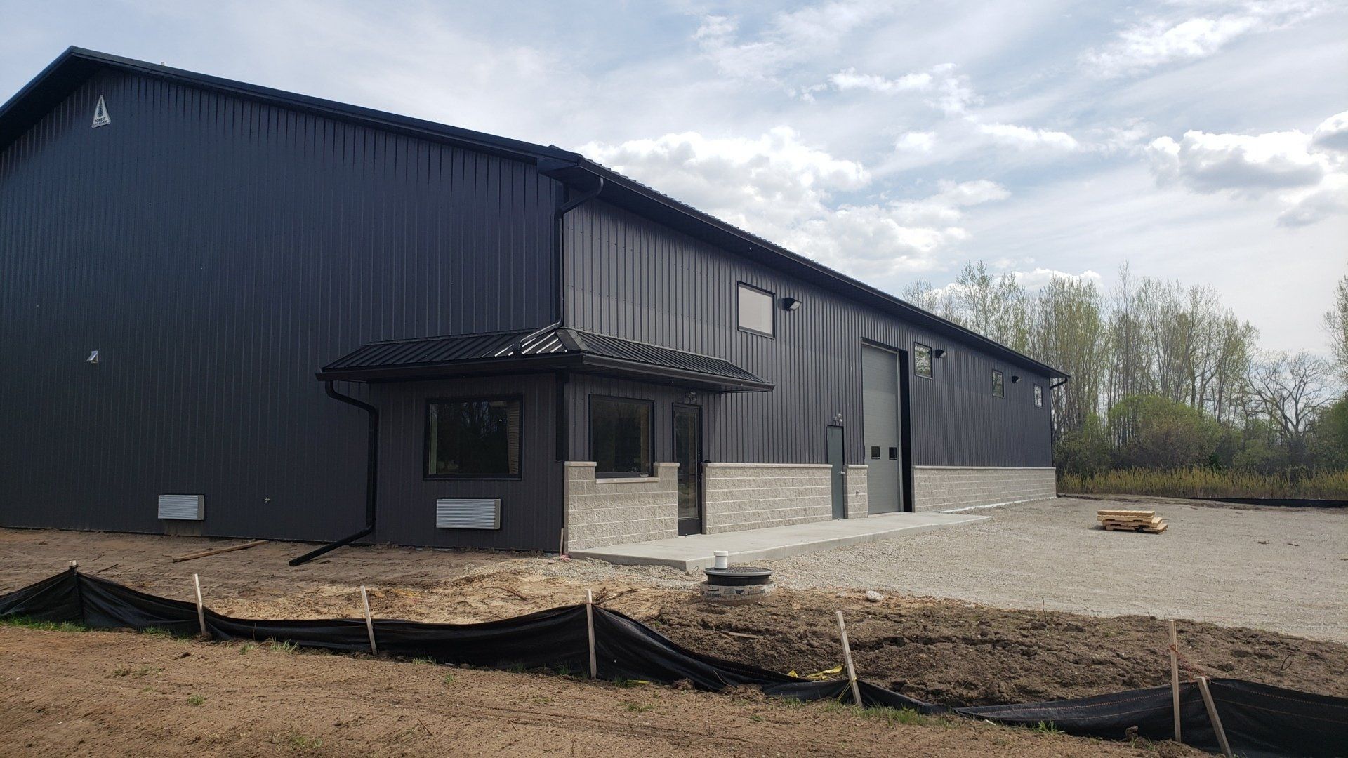 Two new construction homes with Black 5 inch gutters and 2x3 downspouts