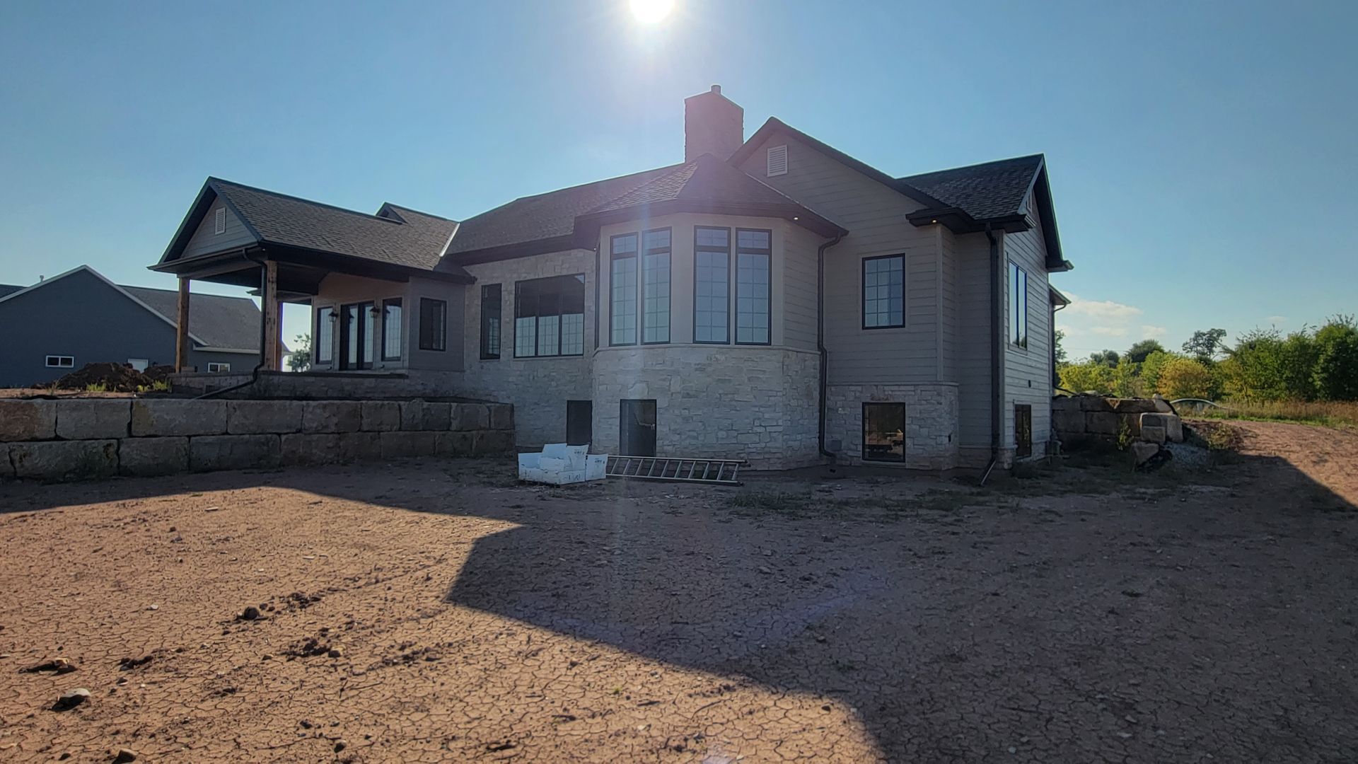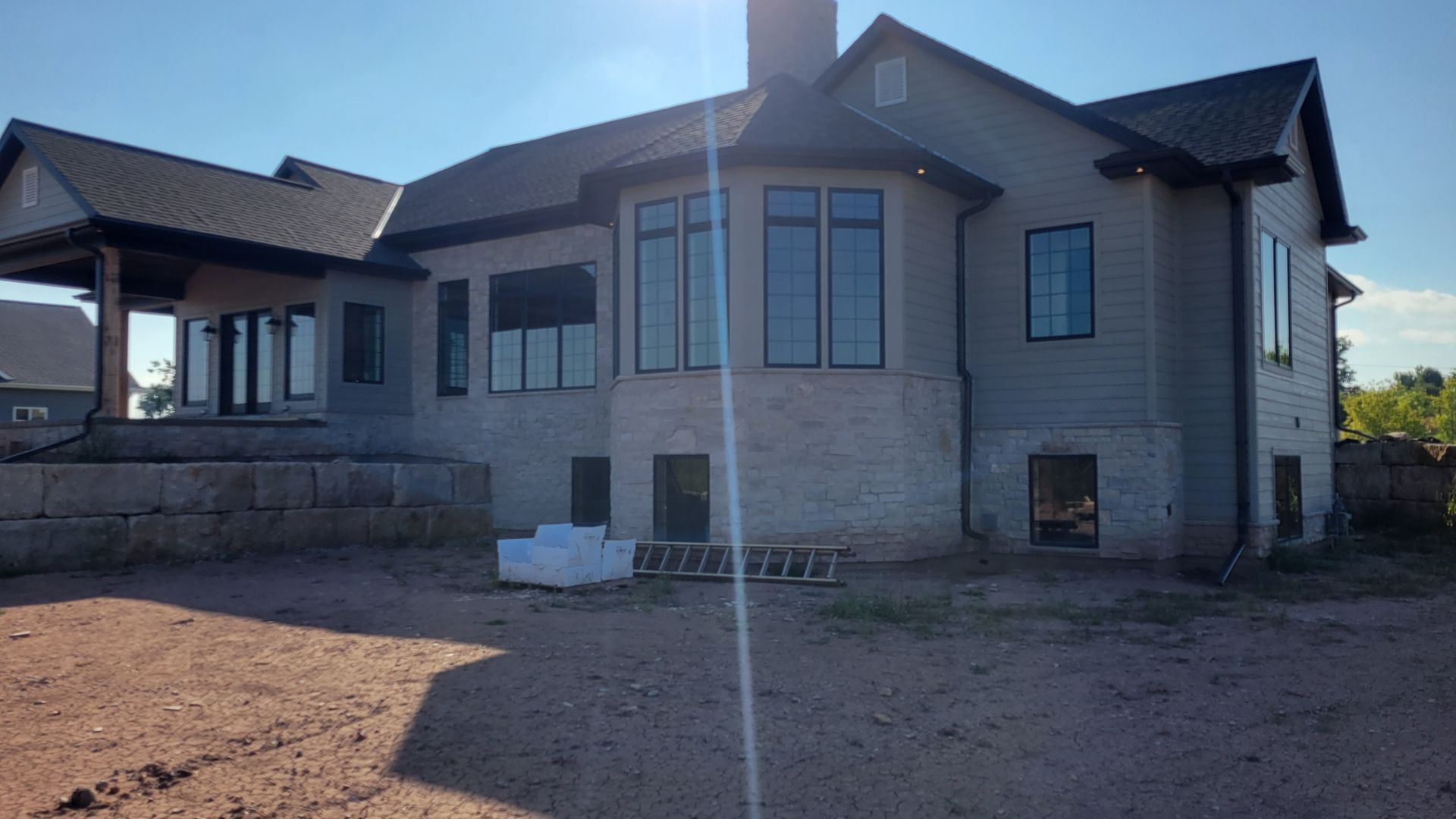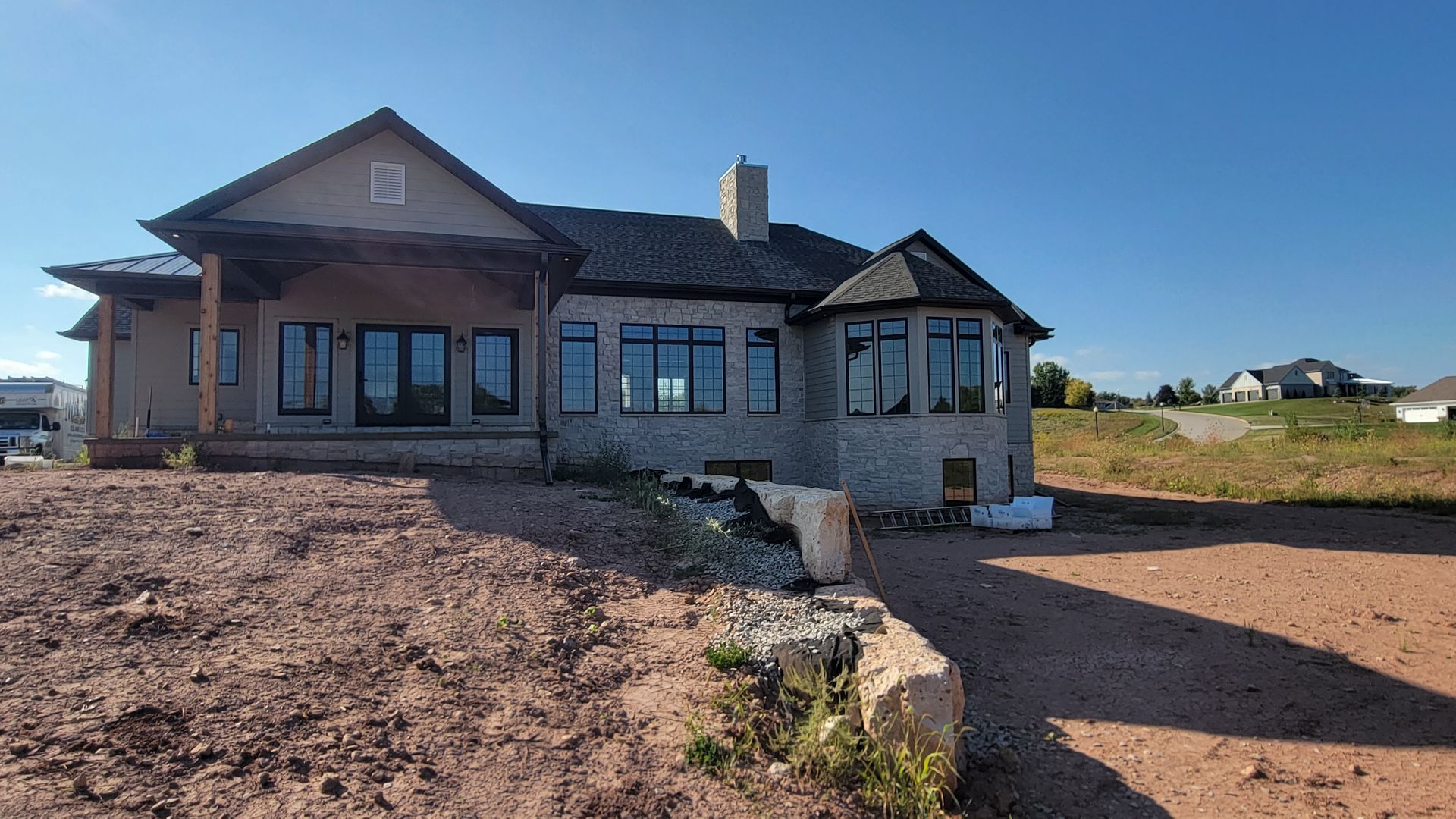 Two new construction homes with Black 5 inch gutters and 2x3 downspouts