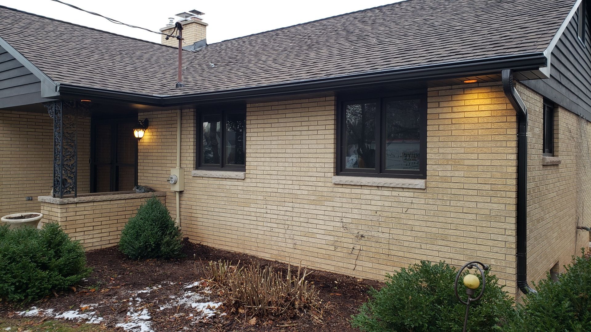 Dark Bronze 5 inch gutter and 3x4 downspouts