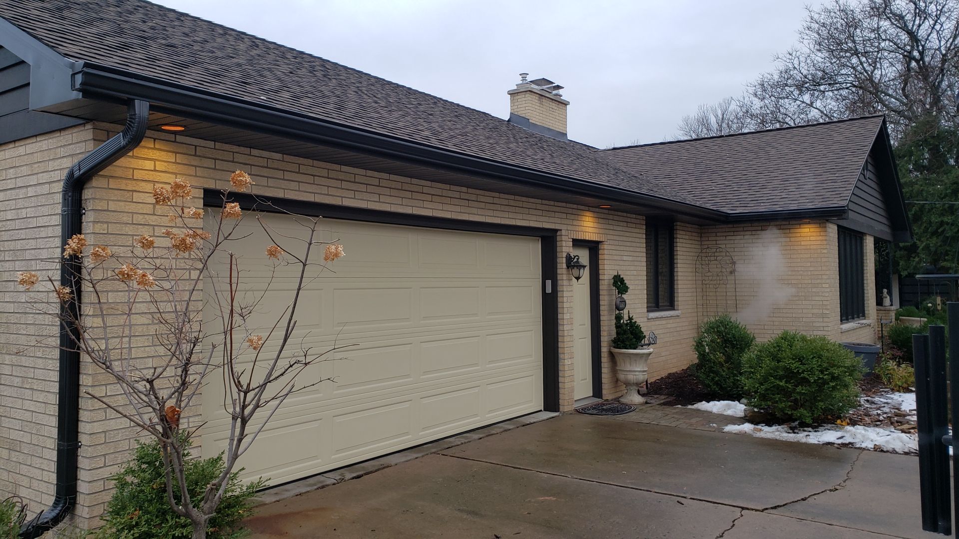 White 5 inch gutter and 3x4 downspout with One Gutter Guard under shingle