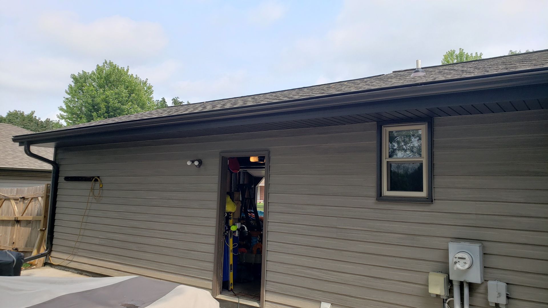 A very vulnerable area often missed is where the gutter meets a wall, either against the siding or J-Channel. A deflector to direct the water from those areas into the gutter is the best way to prevent water dripping and future deterioration.