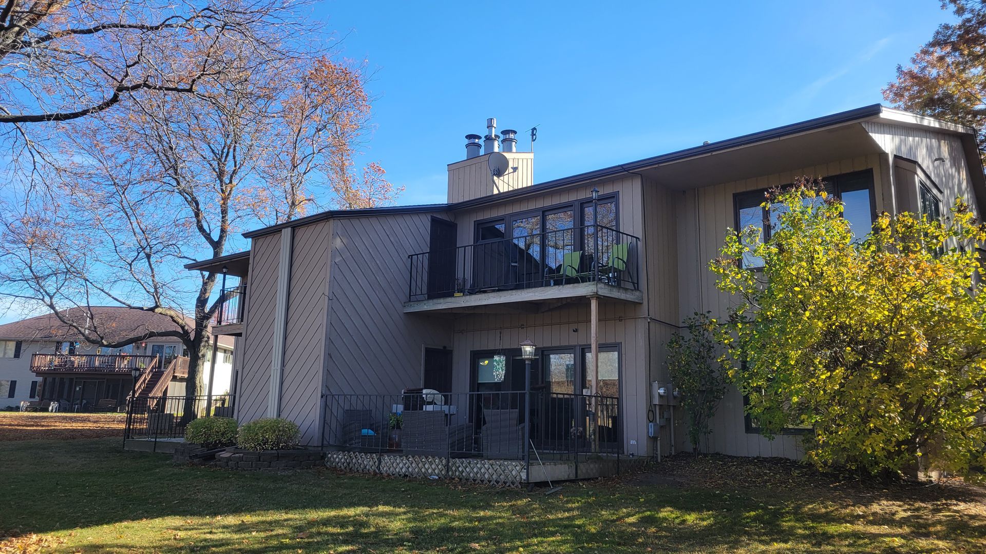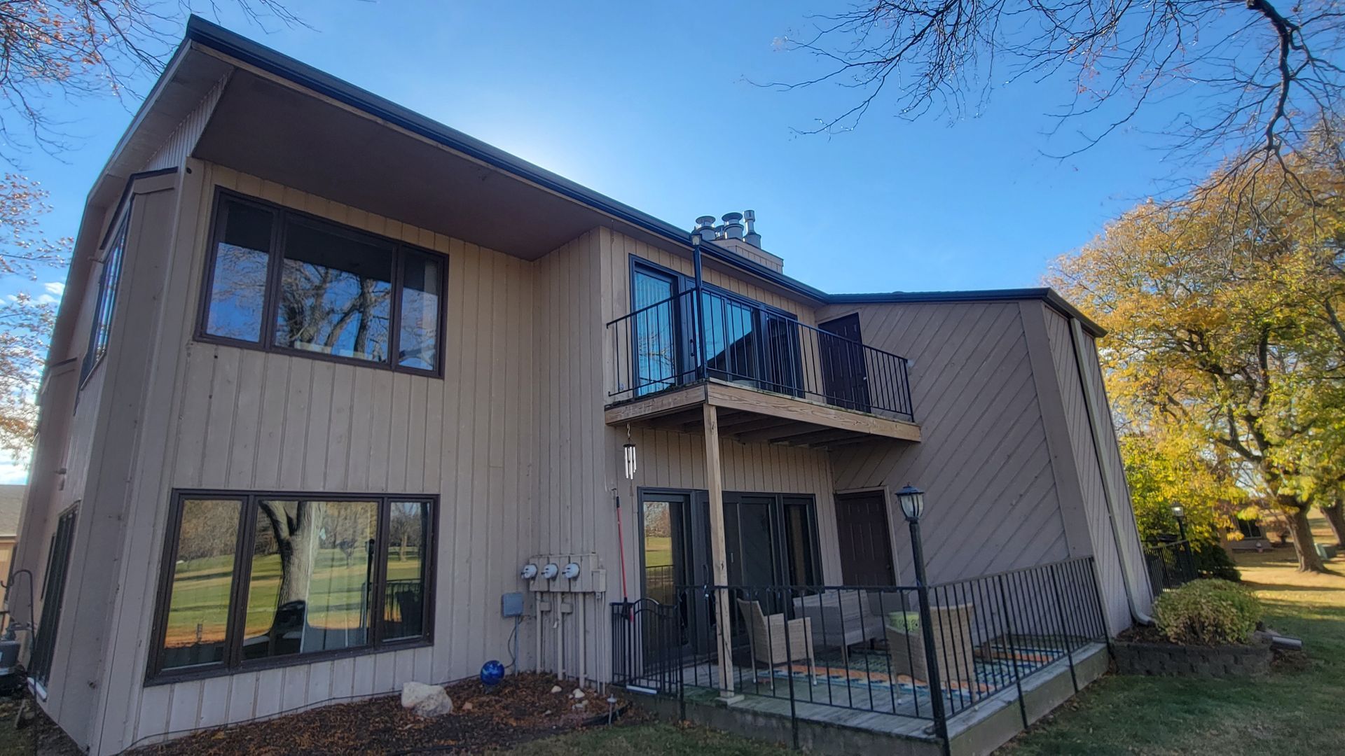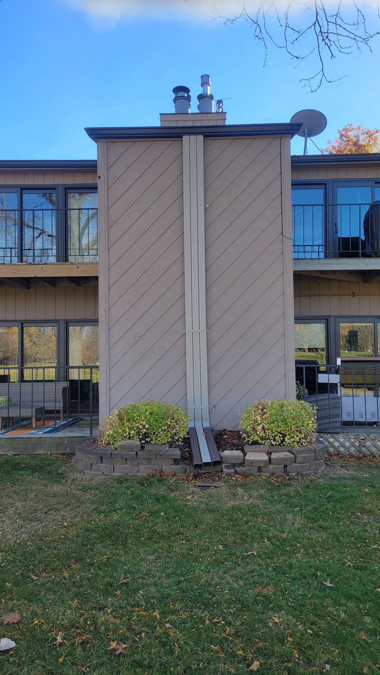 White 5 inch gutter and 3x4 downspout along Lake Michigan