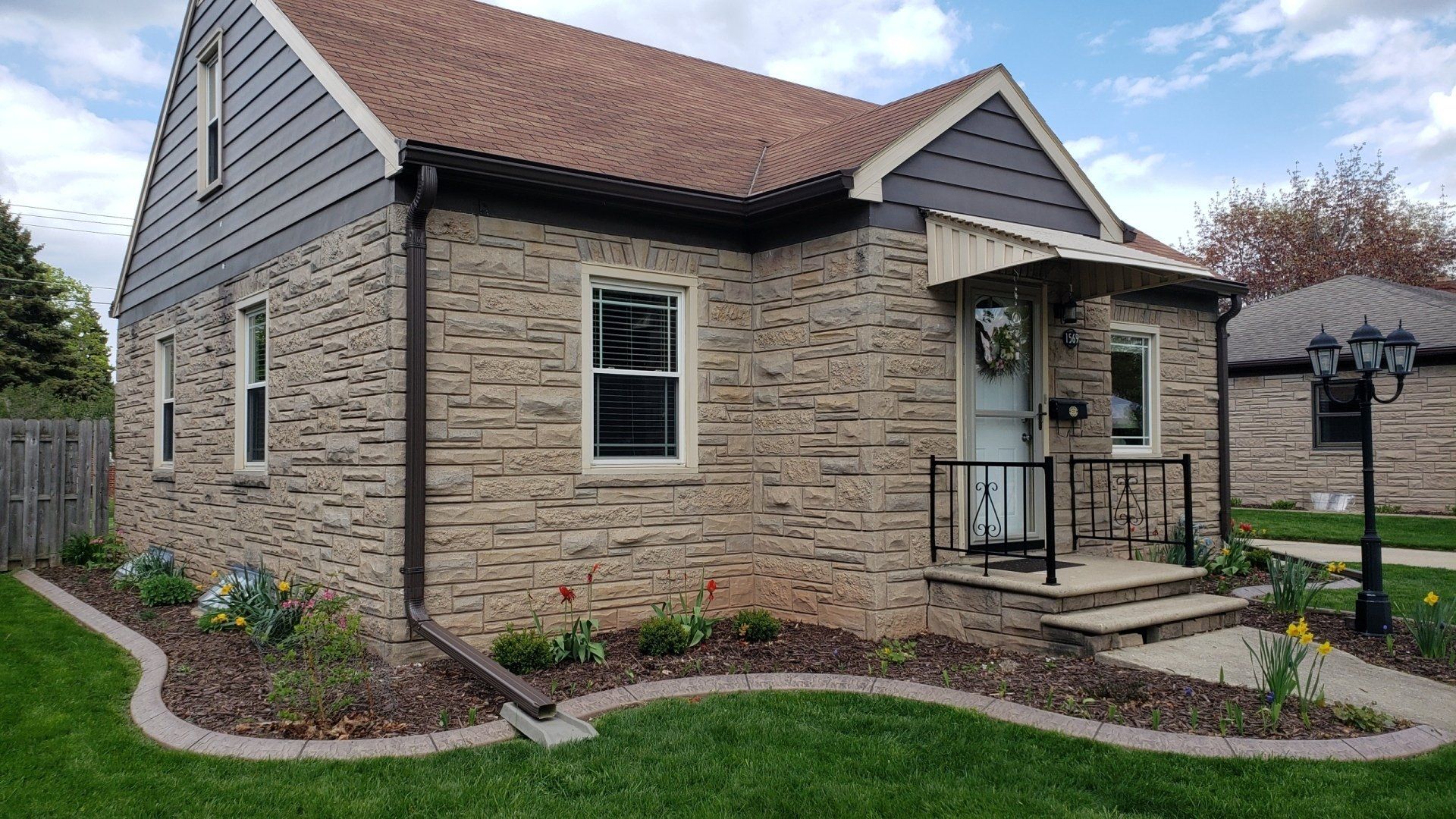 Dark Bronze 6 inch gutter with Clay 3x4 downspouts