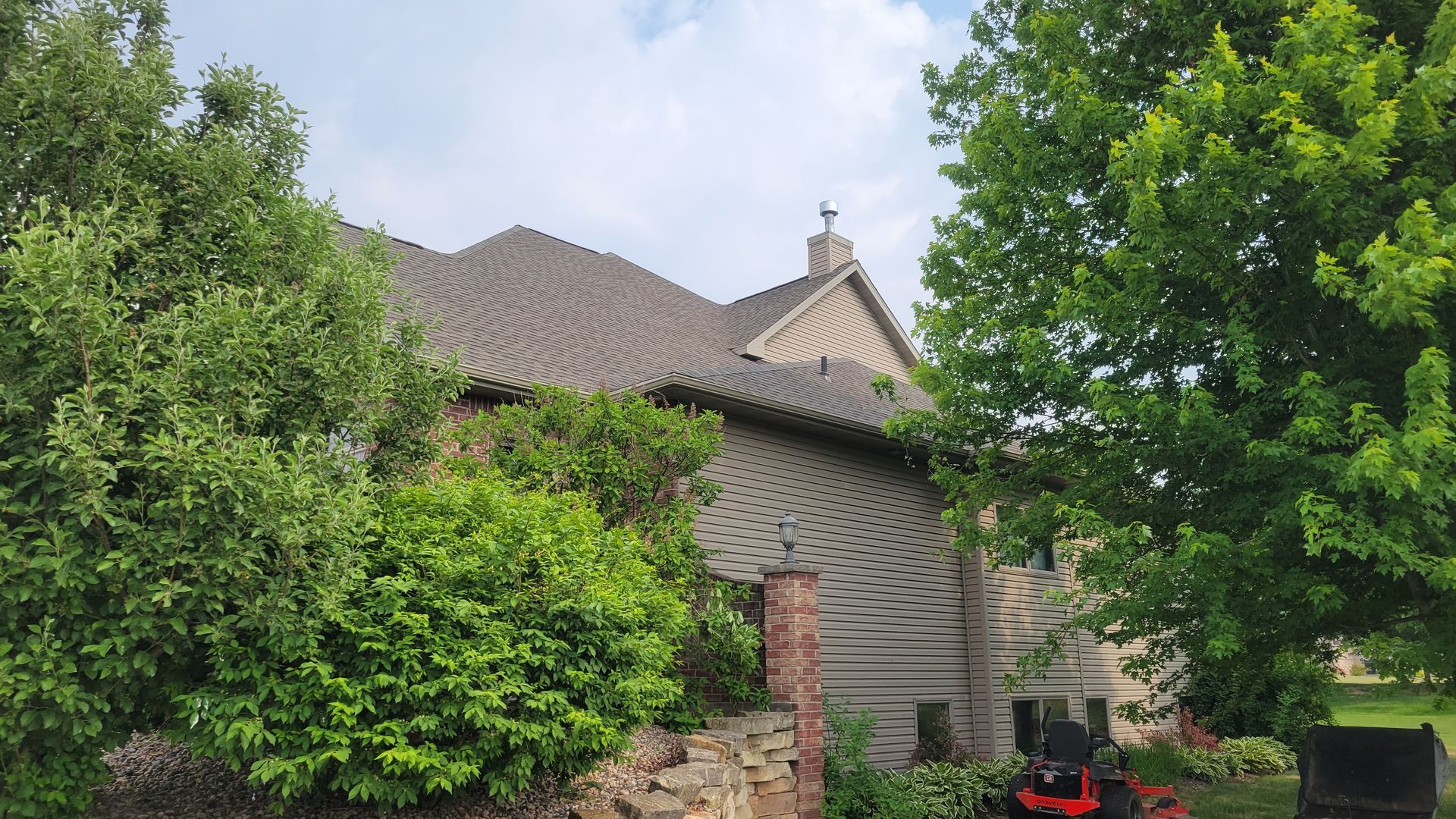 Dark Bronze 6 inch gutter with Clay 3x4 downspouts
