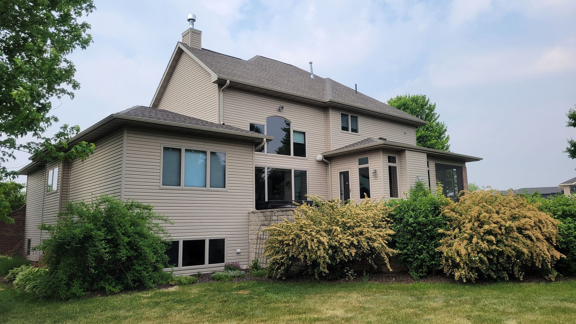 A very vulnerable area often missed is where the gutter meets a wall, either against the siding or J-Channel. A deflector to direct the water from those areas into the gutter is the best way to prevent water dripping and future deterioration.