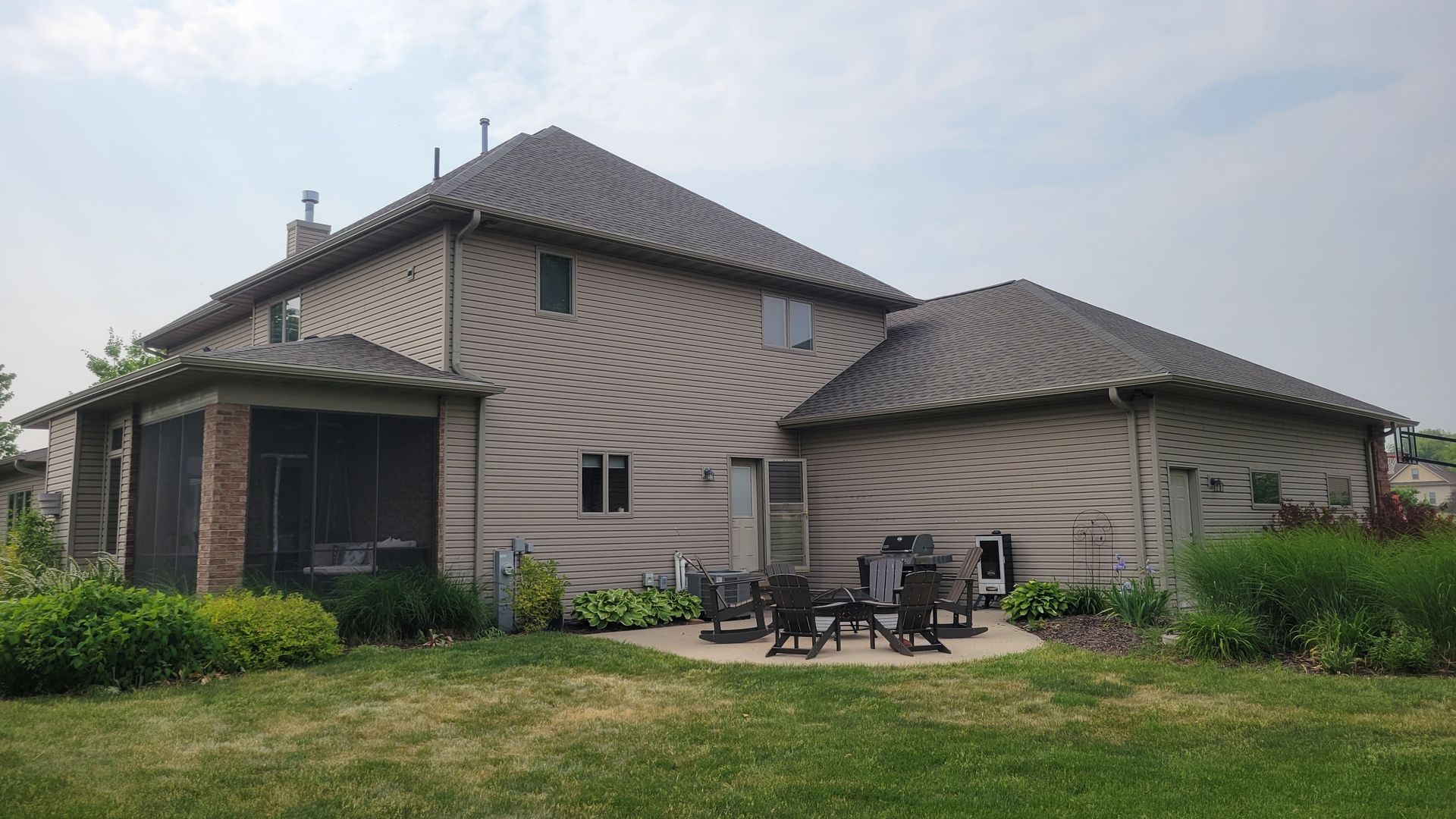 Two new construction homes with Black 5 inch gutters and 2x3 downspouts