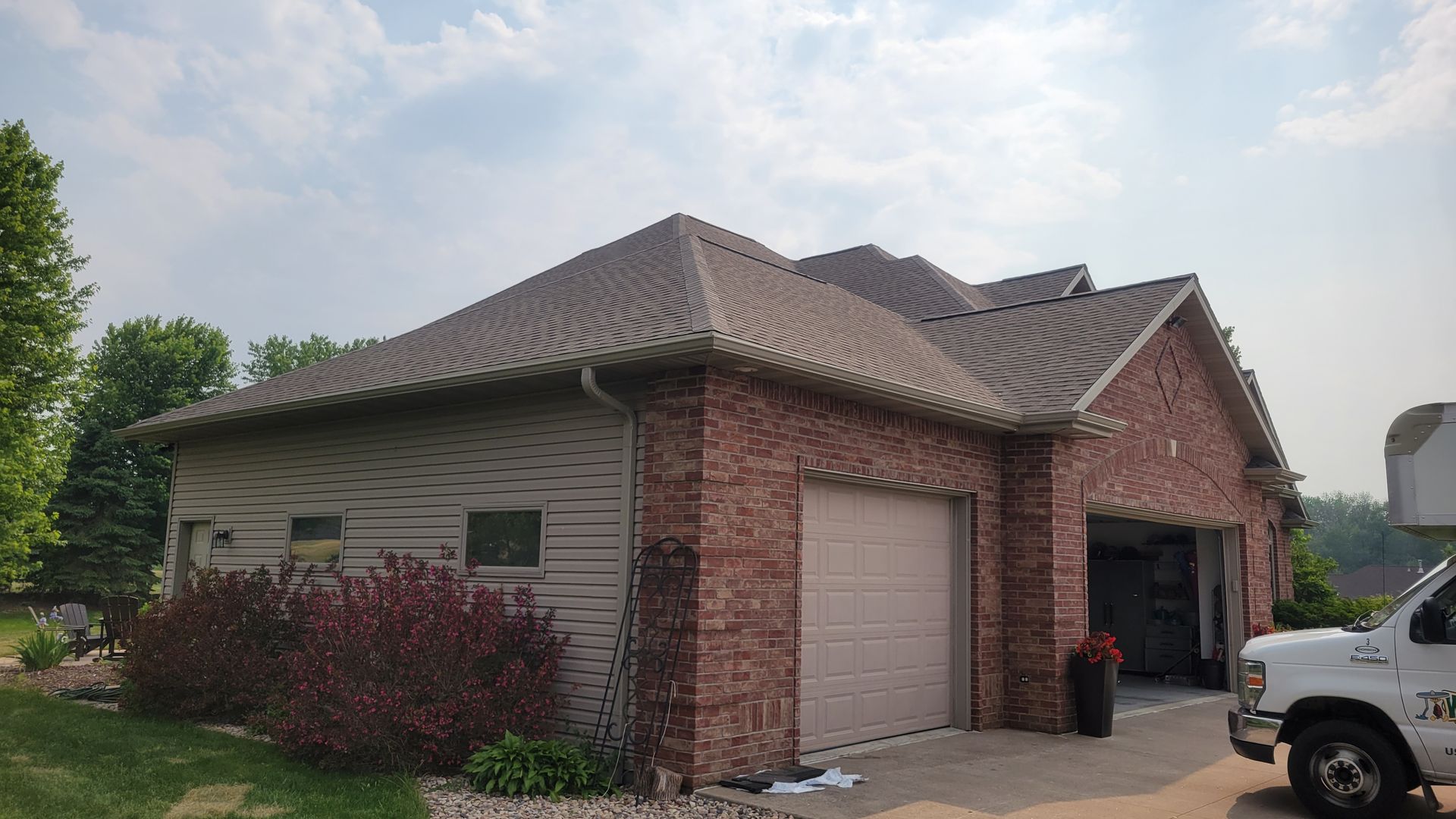 White 5 inch gutter and 3x4 downspout with One Gutter Guard under shingle