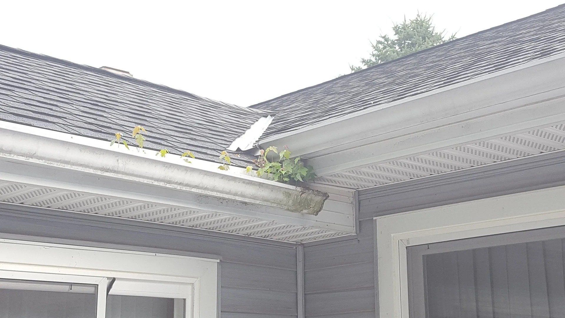 A very vulnerable area often missed is where the gutter meets a wall, either against the siding or J-Channel. A deflector to direct the water from those areas into the gutter is the best way to prevent water dripping and future deterioration.