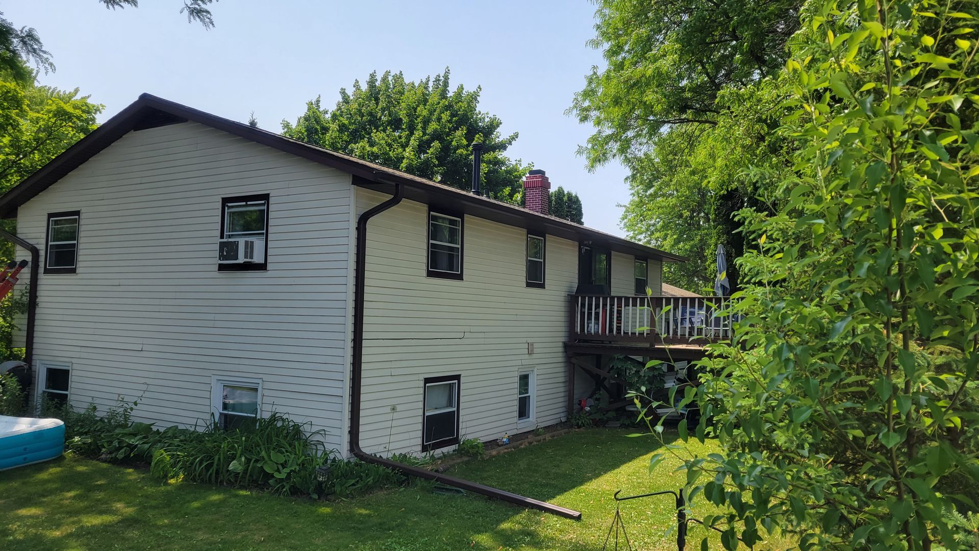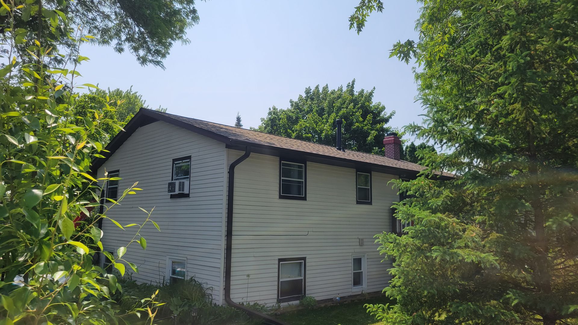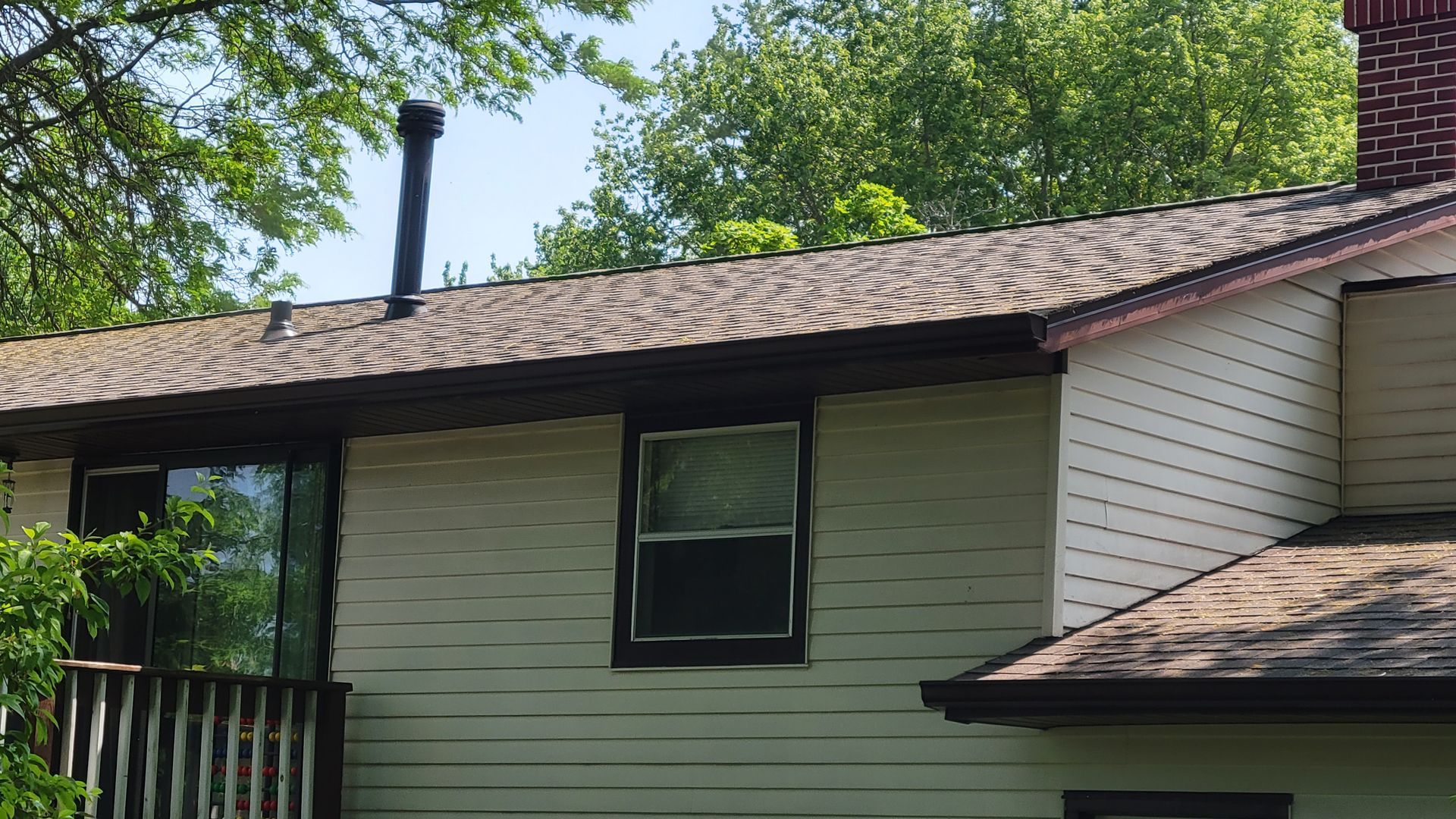 White 5 inch gutter and 3x4 downspout with One Gutter Guard under shingle
