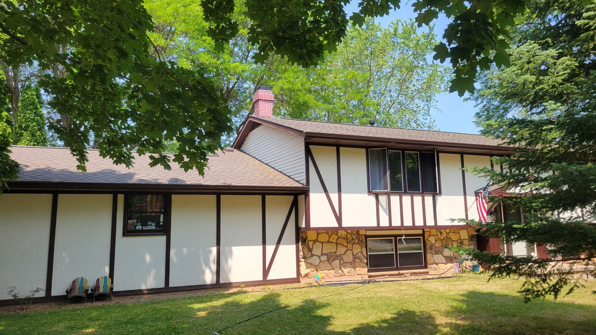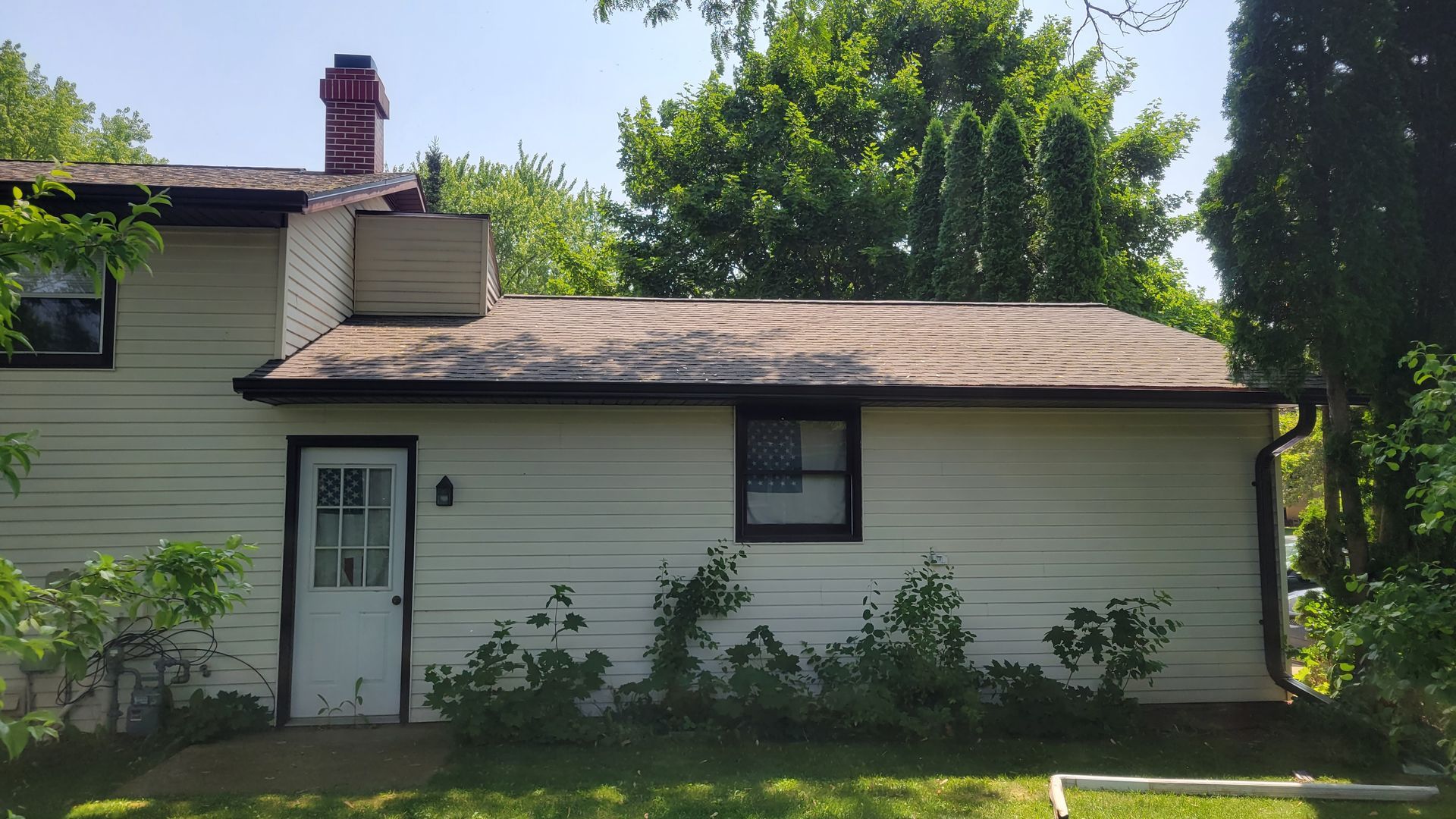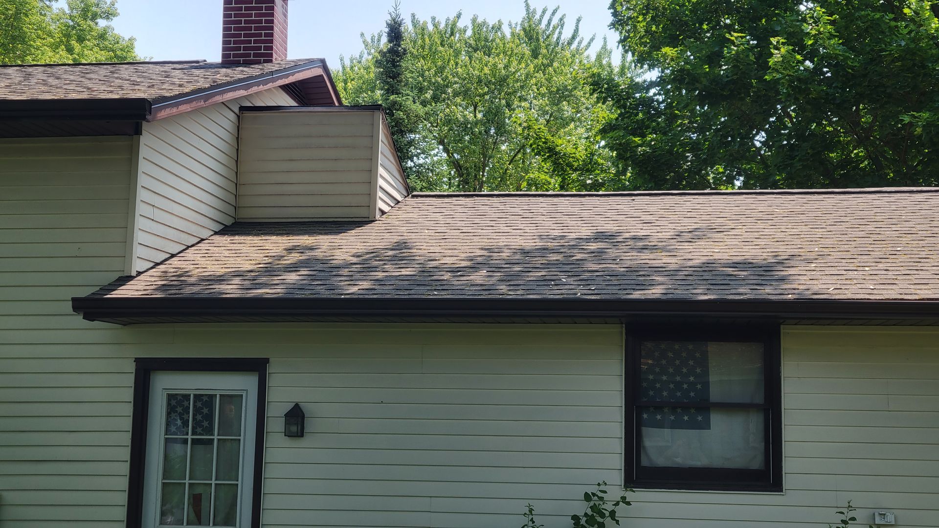 White 5 inch gutter and 3x4 downspout with One Gutter Guard under shingle