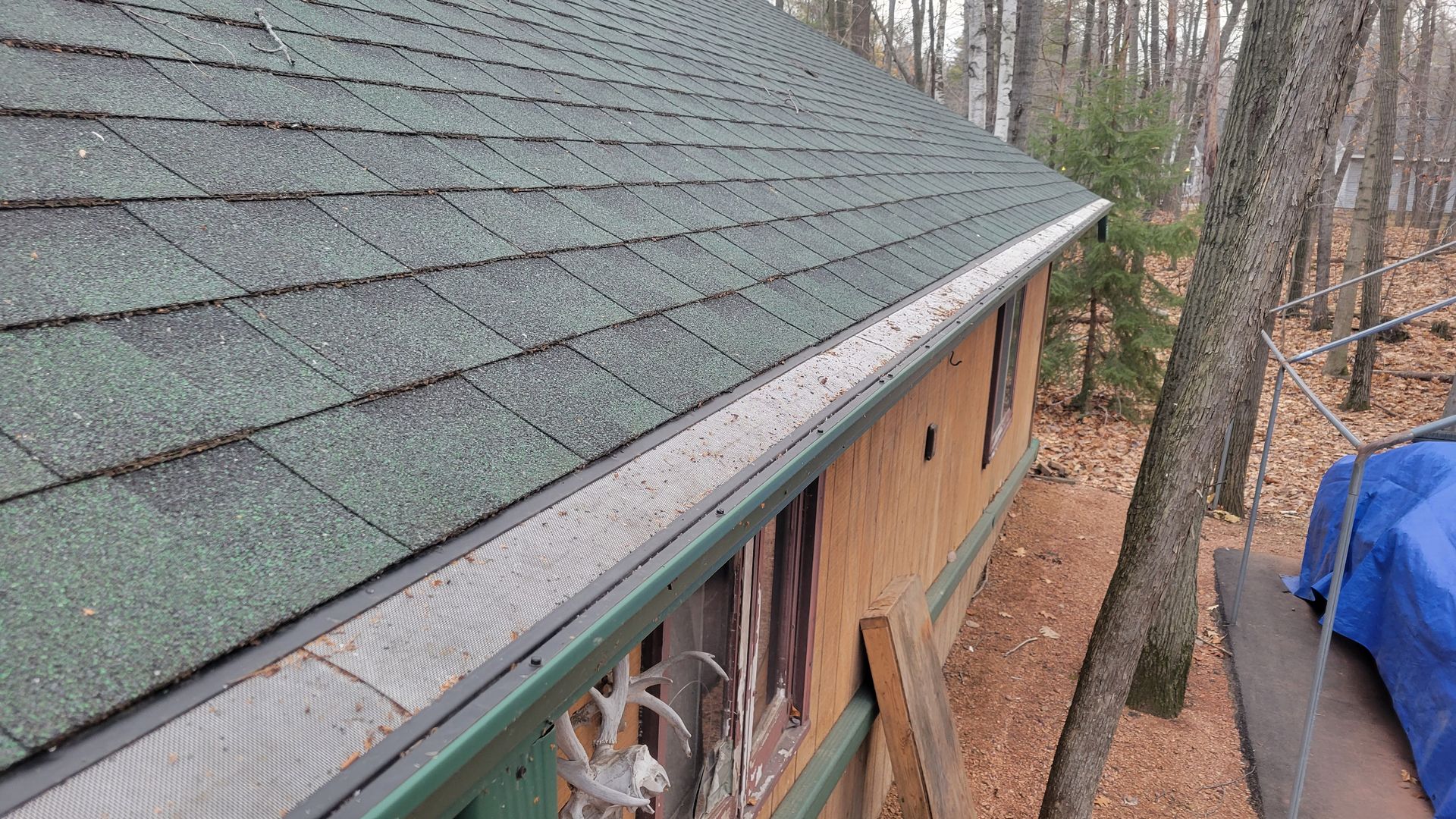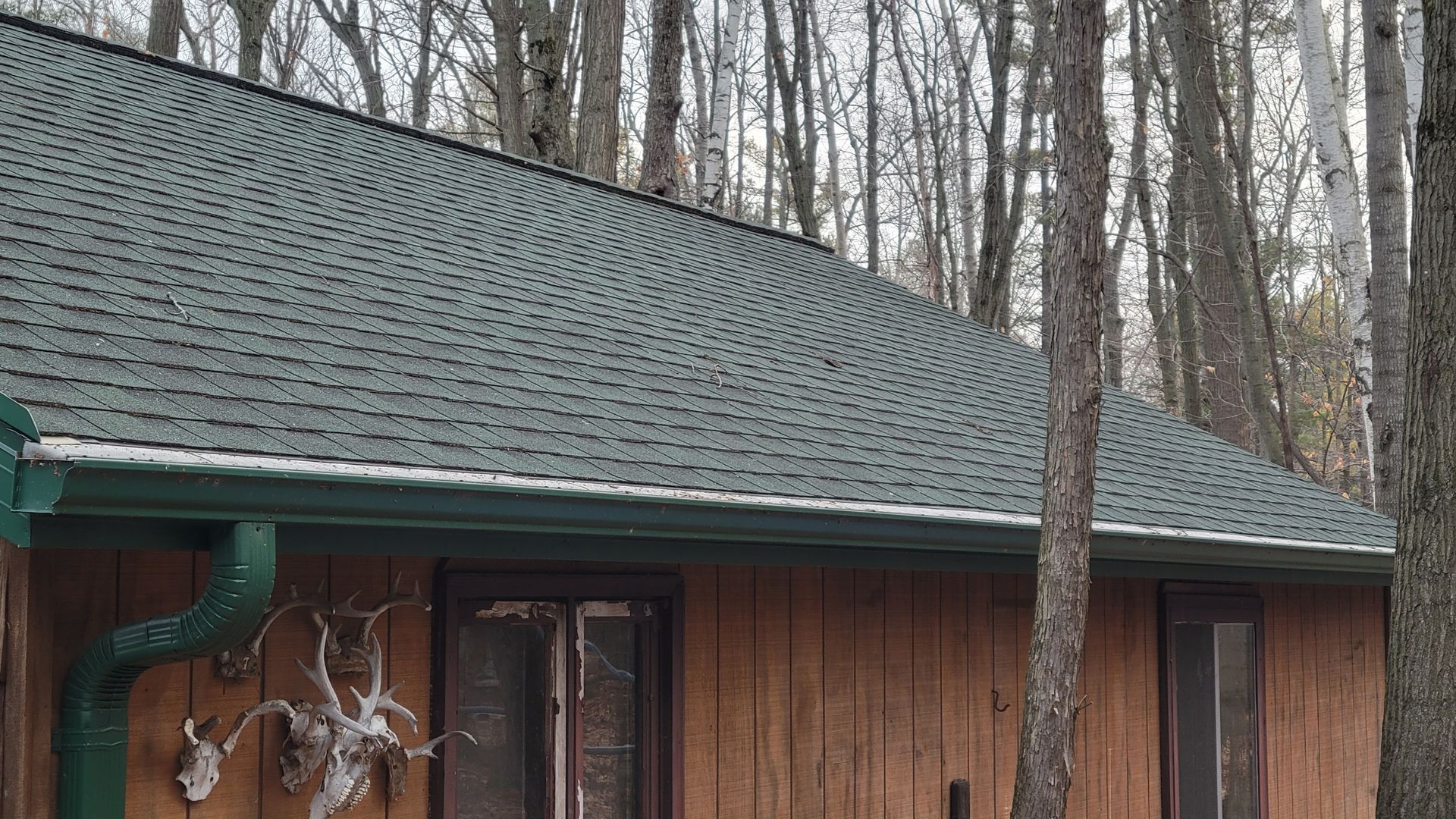 White 5 inch gutter and 3x4 downspout along Lake Michigan