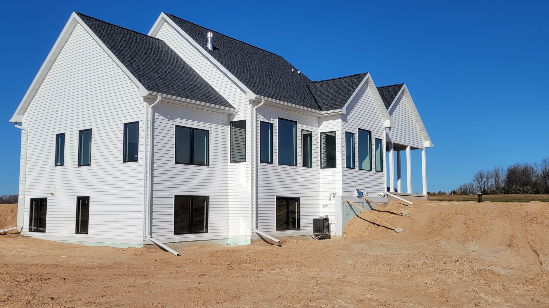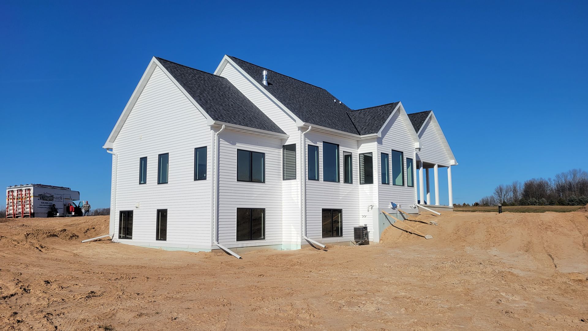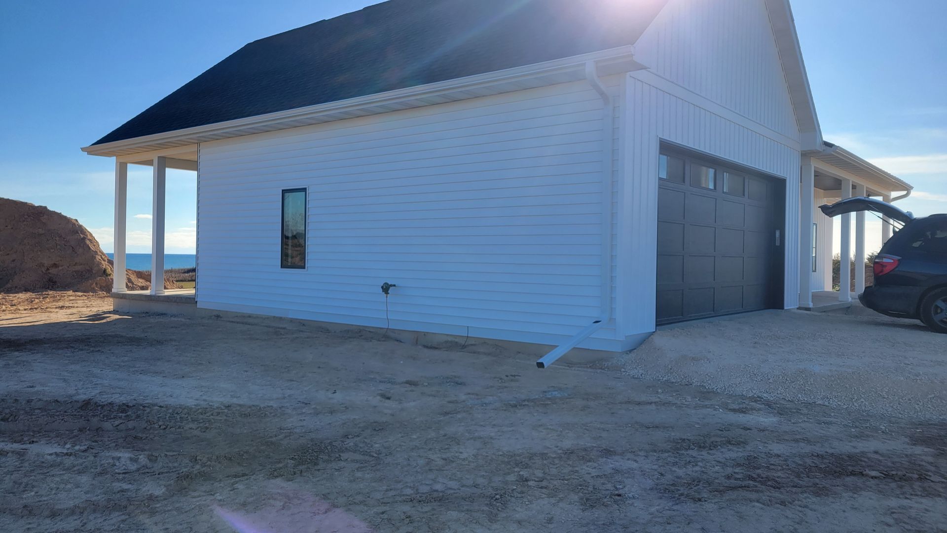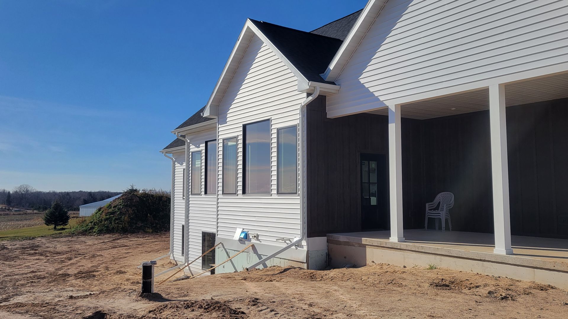 White 5 inch gutter and 3x4 downspout along Lake Michigan