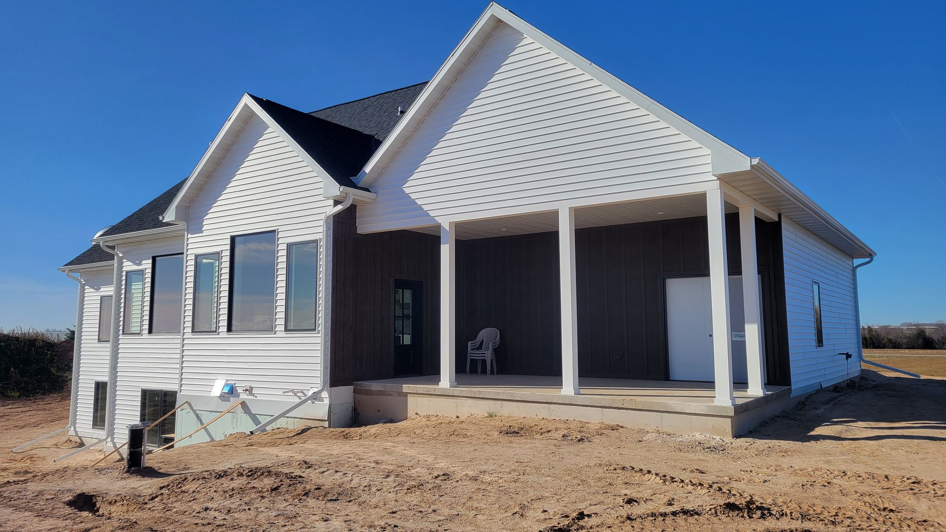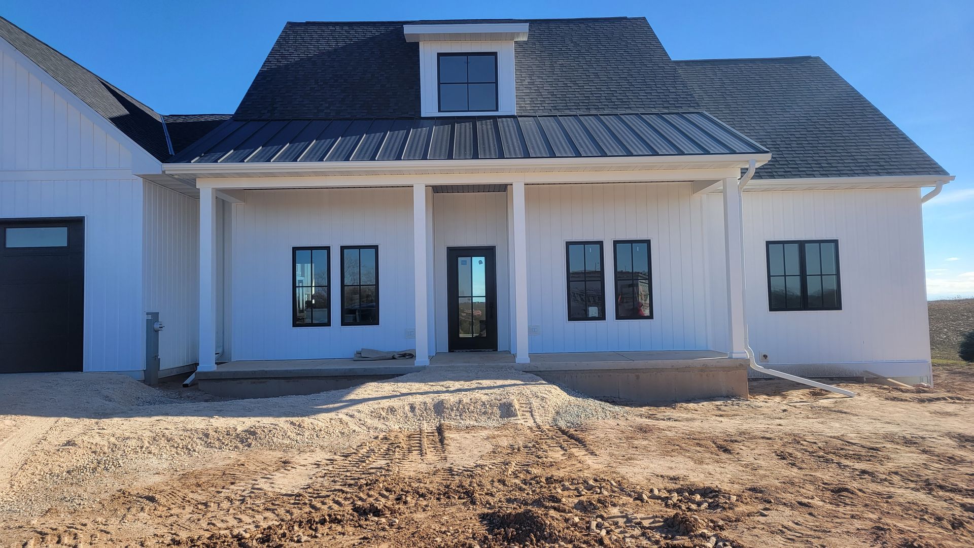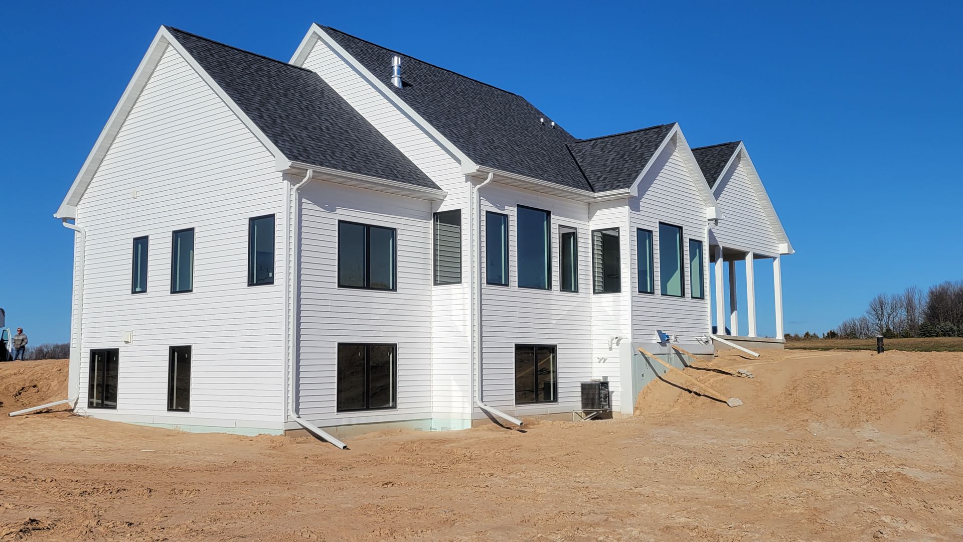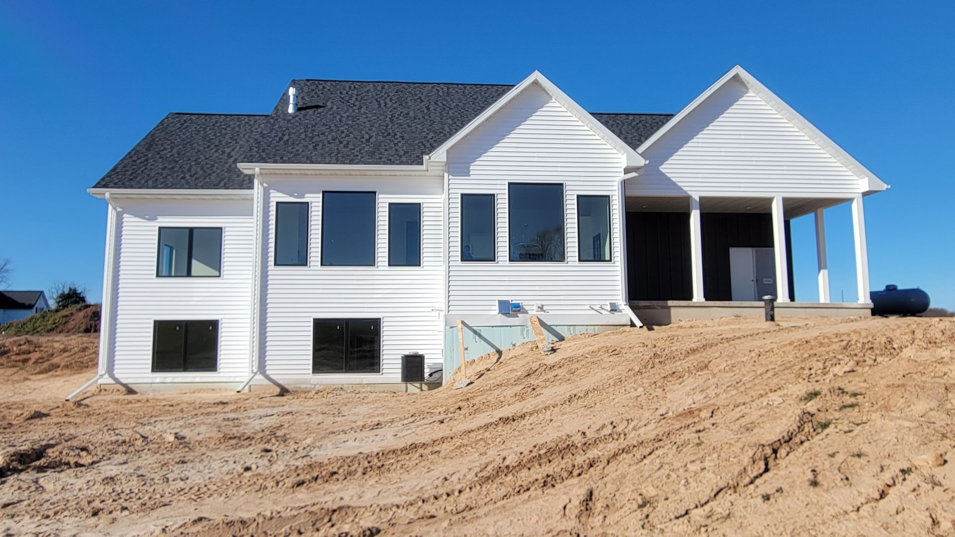 White 5 inch gutter and 3x4 downspout along Lake Michigan