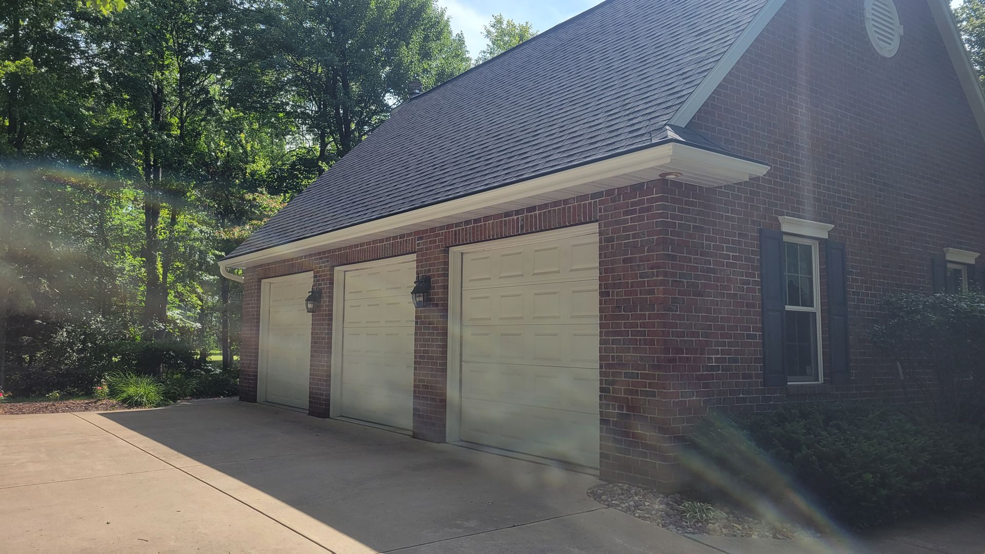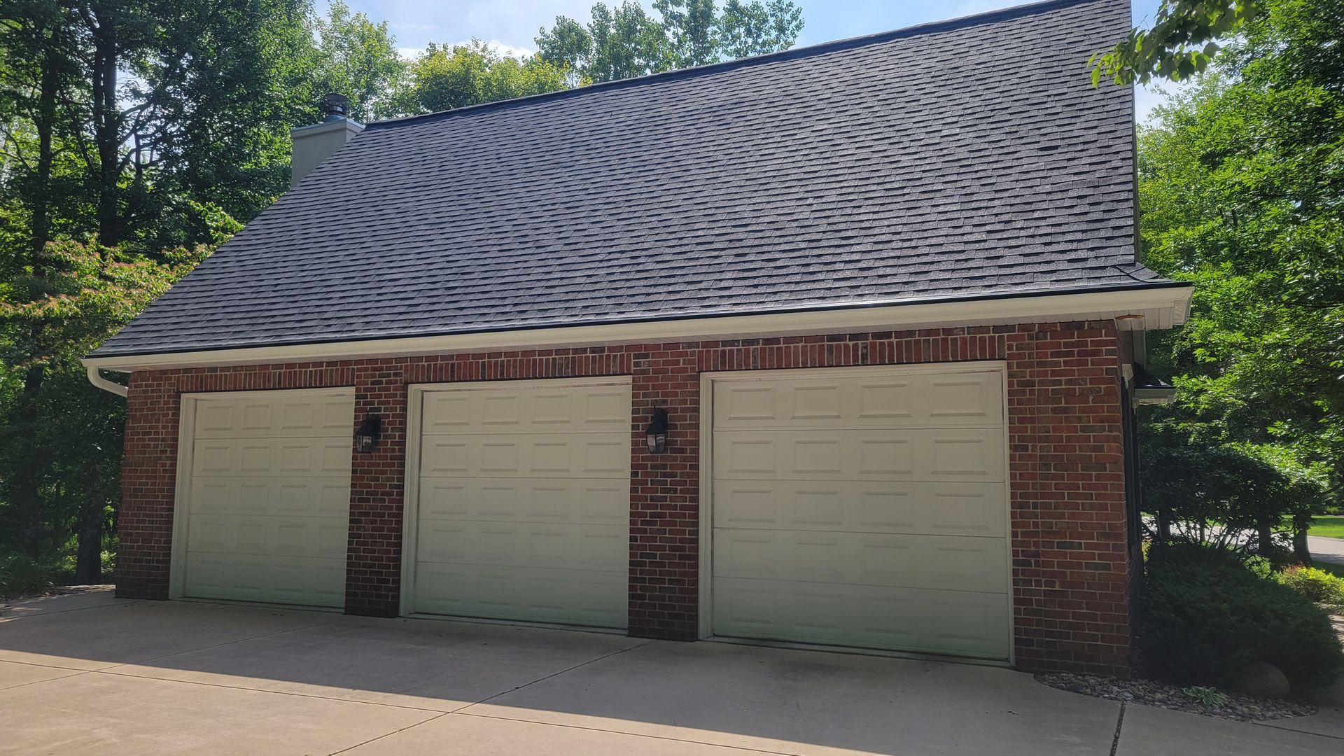 White 5 inch gutter and 3x4 downspout with Black Leaf-X gutter covers