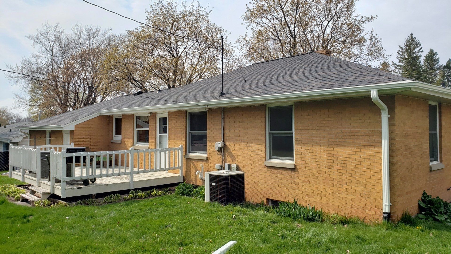 White 5 inch gutter and 3x4 downspout with One Gutter Guard under shingle