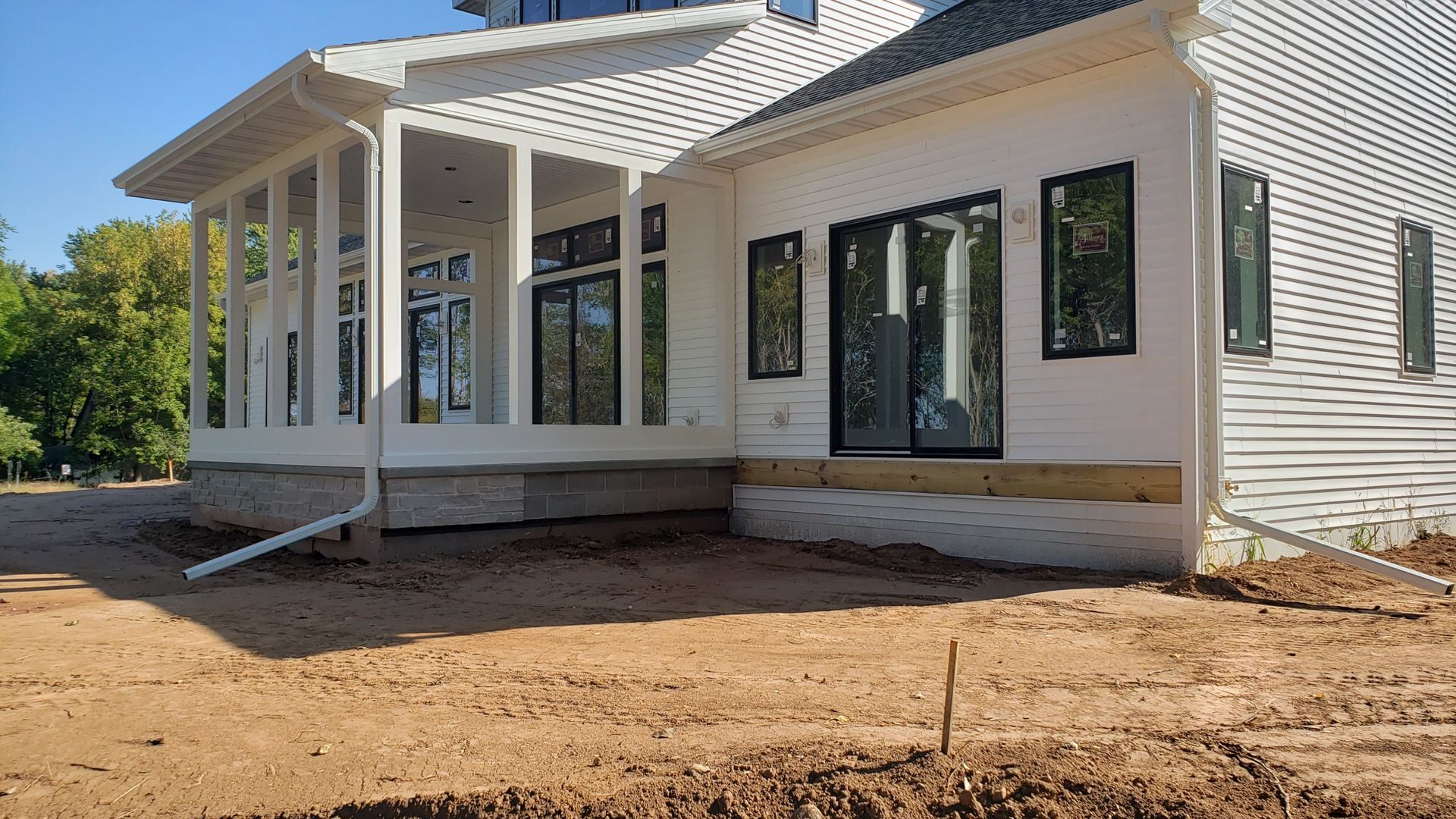 A very vulnerable area often missed is where the gutter meets a wall, either against the siding or J-Channel. A deflector to direct the water from those areas into the gutter is the best way to prevent water dripping and future deterioration.