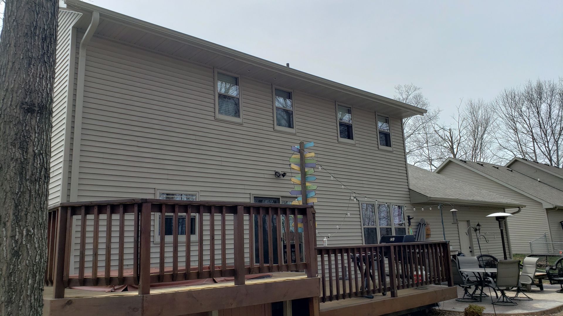 A very vulnerable area often missed is where the gutter meets a wall, either against the siding or J-Channel. A deflector to direct the water from those areas into the gutter is the best way to prevent water dripping and future deterioration.