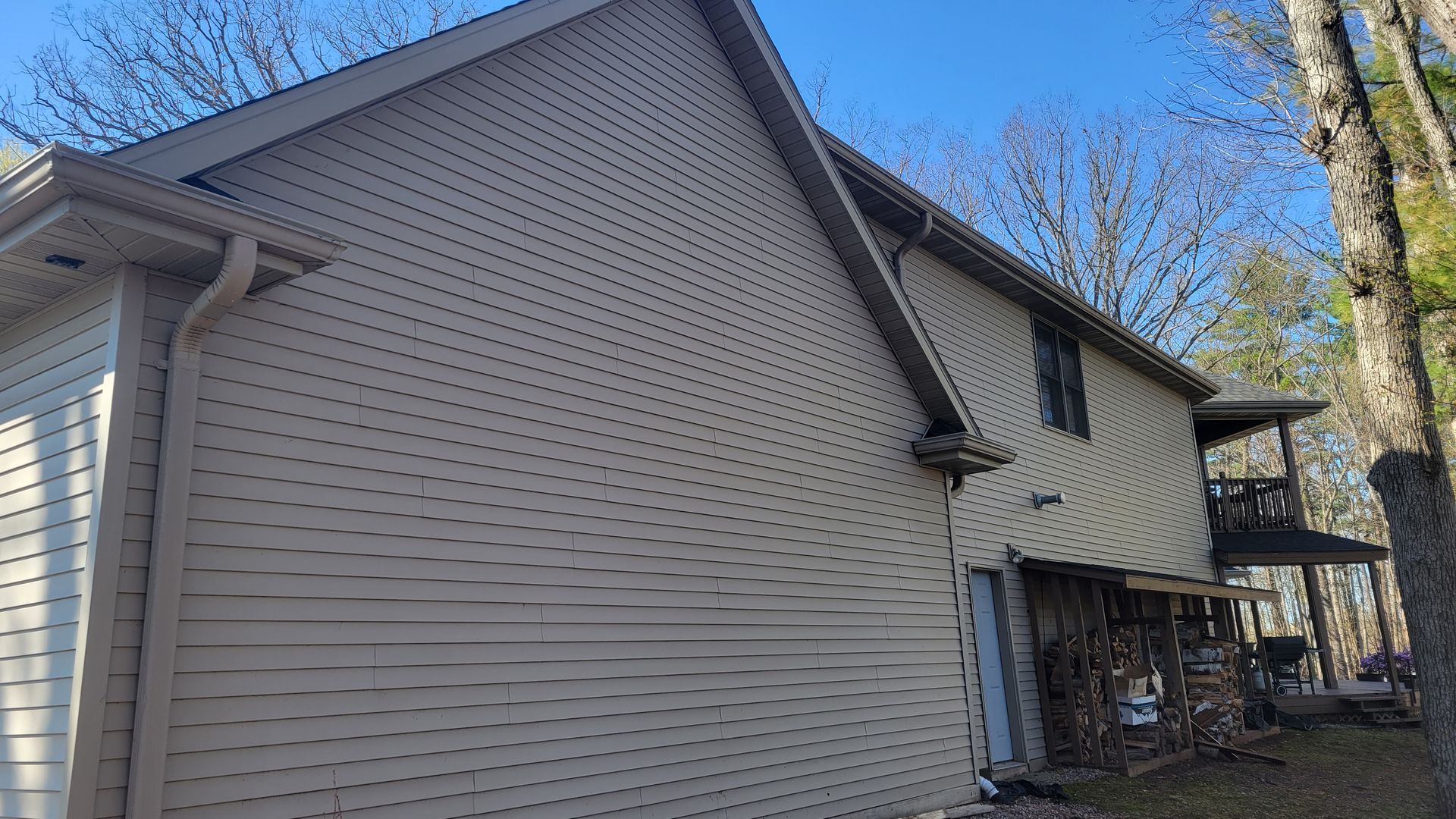 A very vulnerable area often missed is where the gutter meets a wall, either against the siding or J-Channel. A deflector to direct the water from those areas into the gutter is the best way to prevent water dripping and future deterioration.